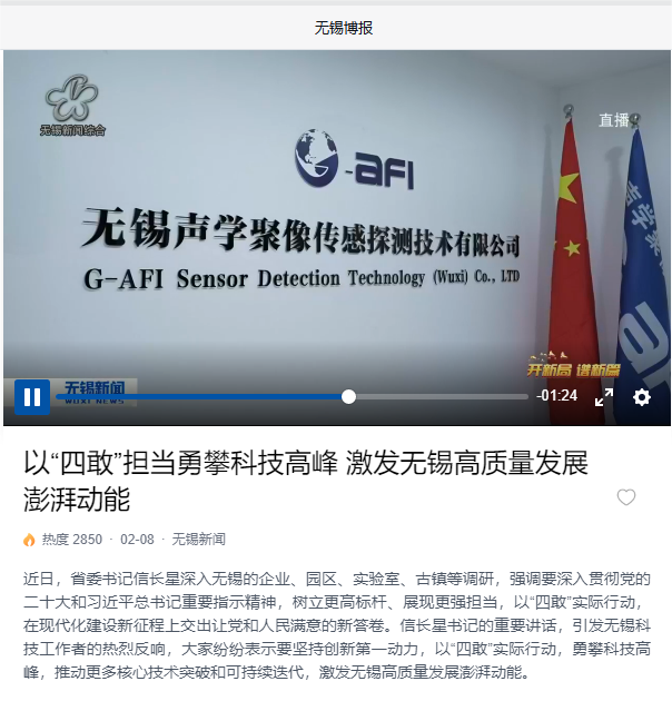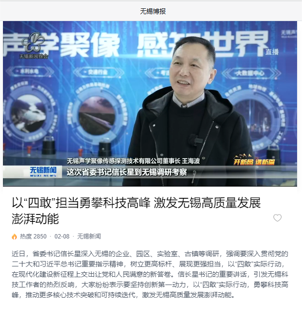 近日,省委书记信长星深入无锡声学聚像传感探测技术有限公司调研